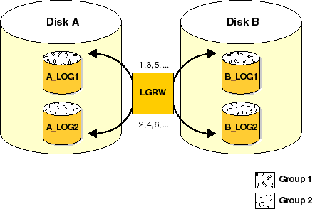 LGWR always addresses all members of a group, whether the group contains one or many members. For example, after a log switch, LGWR concurrently writes to all members of the next group, and so on. LGWR never writes concurrently to one member of a given group and one member of another group.
