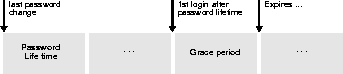 For example, the lifetime of a password is 60 days, and the grace period is 3 days. If the user tries to log in on any day after the 60th day (this could be the 70th day, 100th day, or another; the point here is that it is the first log in attempt after the password lifetime), that user receives a warning message indicating that the password is about to expire in 3 days. If the user does not change the password within three days from the first day of the grace period, the user's account expires. The following statement indicates that the user must change the password within 3 days of its expiration:
